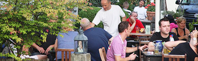 In pretty weather we serve all foods and drinks also in our cozy beer garden.